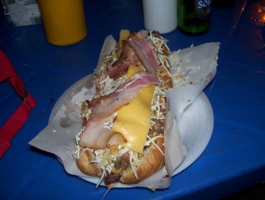 Woooaahhhh….. quelle soirée incroyable à brosser avec Matt, Luis (super cool monsieur de Lima), Kellie (une Américaine qui a adopté le Venezuela) et les autres!!! Au programme, merengue campesino, bola criolla (la variante locale de la pétanque), plein de bières et le plus gigantesque, gras et riche hot-dog que j’ai mangé de ma vie. Ouf… vais me coucher et essayer de digérer ce monstre.