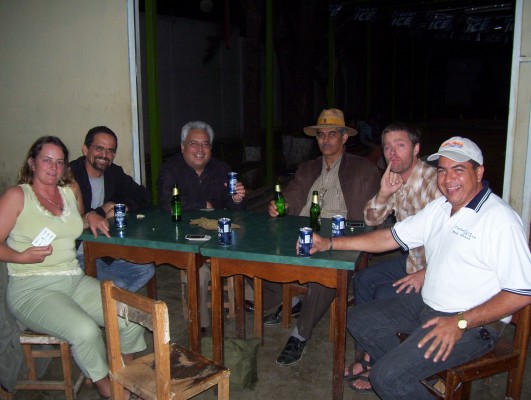 J’ai donc pu constater à quel point c’était plus vivant que je ne le croyais, ici. Les stands à hot dogs font leur apparition lorsque le soleil se couche; des bandes de jeunes se tiennent en divers lieux de la ville; les resto-bars accueillent les personnes en quête de bière. Matt, Luis et moi étions guidés par Luis, le propriétaire d’une posada. Il était vraiment cool, il nous a promenés d’un bout à l’autre de Sanare. On a commencé dans une tasca-restaurant où les hommes (aucune femme!!) jouaient à la bola criolla, une variante de la pétanque. Les boules pèsent deux kilos chacune! J’étais avec Kellie, son chum José Angelo, Angelo, Luis, Matt et Luis. On n’a hélas pu essayer cette activité, mais on a joué à un jeu de cartes très amusant, tout en consommant de la bière.