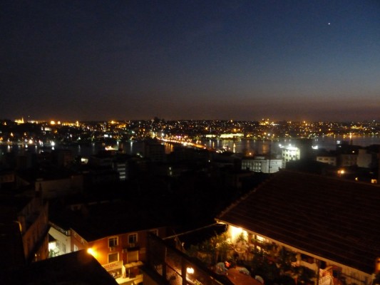 Ouf… toute une arrivée a Istanbul. J’ai passé une bonne partie de la soirée de samedi à festoyer avec des Stambouliotes rencontrés sur la terrasse d’un des innombrables bars dans les rues perpendiculaires à Istiklal Caddesi. Puis, je les ai revus hier, mais ce fut – heureusement – plus relax. On a notamment regardé une partie de pièce de théâtre, juste à côté de la tour de Galata, et on a été sur une terrasse qui offre des vues incroyables sur différents quartiers de la ville. Ce fut une belle soirée. Tout le monde ici est vraiment très gentil, très sympathique. Et cette gentillesse n’est pas forcée, les gens sont authentiquement prévenants, intéressés, généreux. C’est rafraîchissant, comme attitude.