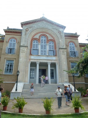 Le but principal de notre visite était le monastère Aya Triada, une école de théologie orthodoxe grecque. En nous voyant, le prêtre n’était pas content: d’abord, je n’étais sur la liste des visiteurs qu’il possédait; ensuite, j’étais en shorts et en sandales. Il était offensé. Coudonc. Avoir su qu’on allait visiter un endroit aussi strict…