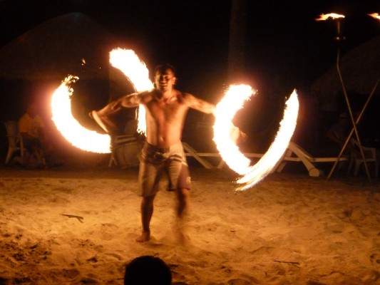 Ainsi, dimanche après-midi, j’ai débarqué à l’auberge Smugglers Cove, située à Nadi. Elle est vraiment très bien, c’est une de mes préférées parmi toutes celles que j’ai visitées. J’ai pu me baigner dans l’océan, jaser voyages avec une Australienne qui y séjournait aussi, regarder Smackdown (chose que je n’ai jamais vraiment eu la chance de faire, chez moi), manger une délicieuse pizza et assister à un spectacle de « danseurs de feu ». Je me suis toutefois couché tôt, car je devais prendre un bateau en matinée pour me rendre à Mana.