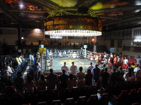 Le 15 décembre dernier, j’ai donc assisté à un gala de muay-thaï au stade de boxe de Patong, sur le chemin Sai Nam Yen. Neuf combats figuraient au programme et ils mettaient en vedette des boxeurs de diverses catégories de poids. Par exemple, il y a eu un combat entre deux enfants et deux entre des adultes poids lourd. La foule s’élevait à 150-200 personnes, elle était composée surtout de touristes, mais aussi d’une bonne proportion de Thaïlandais.