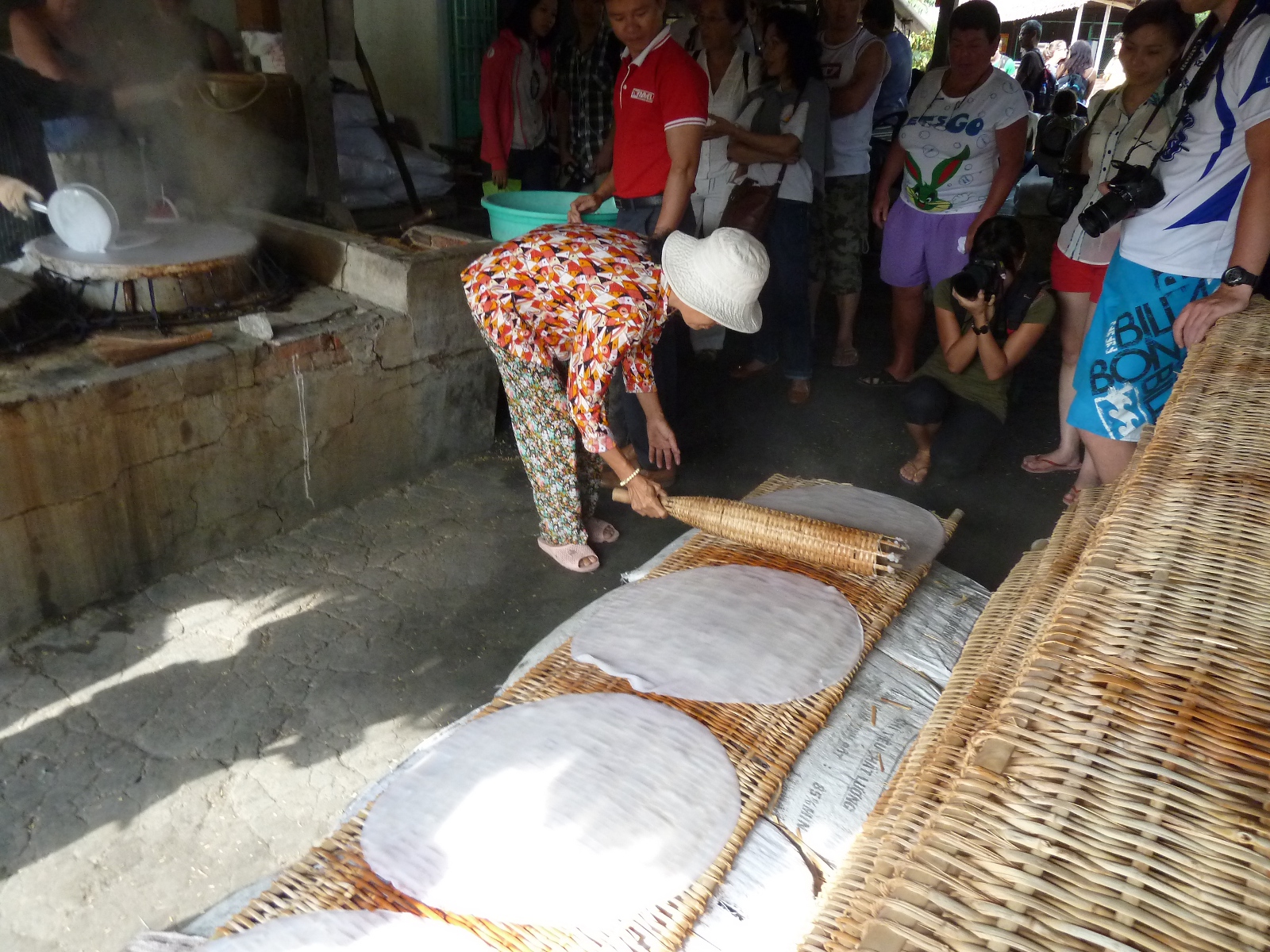 fabrique nouilles riz ← Previous Next → Le papier de riz, tout juste cuit, est déposé sur un treillis pour ensuite être séché au soleil.