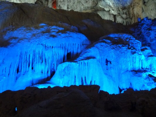 On a effectué un premier arrêt à la grotte de Thiên Cung. Très bel endroit, grâce aux nombreux spots colorés disséminés ça et là. Un fort achalandage enlève toutefois un peu de plaisir à cette visite. Difficile de ne pas marcher sur les pieds des autres touristes.