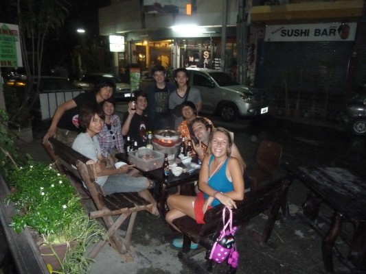 On a donc arrosé et on a été arrosés. Copieusement. Généreusement. Amoureusement. Vers 16 h 30, on était totalement mouillés et on commençait à avoir froid. Ça peut paraître incroyable d’avoir froid quand il fait près de 40 degrés, mais c’était le cas. C’est que nombre de gens mettaient de gros cubes de glace dans leurs bidons pour rendre l’eau bien froide. De vrais sadiques. Le choc entre chaleur et froid a fini par prendre le dessus sur notre volonté d’inonder la ville. On a donc terminé la journée au Antique Pub, où on est restés longtemps. À un tel point que des jeunes Thaïlandais nous ont invités à partager un souper BBQ avec eux. Une formidable expérience.