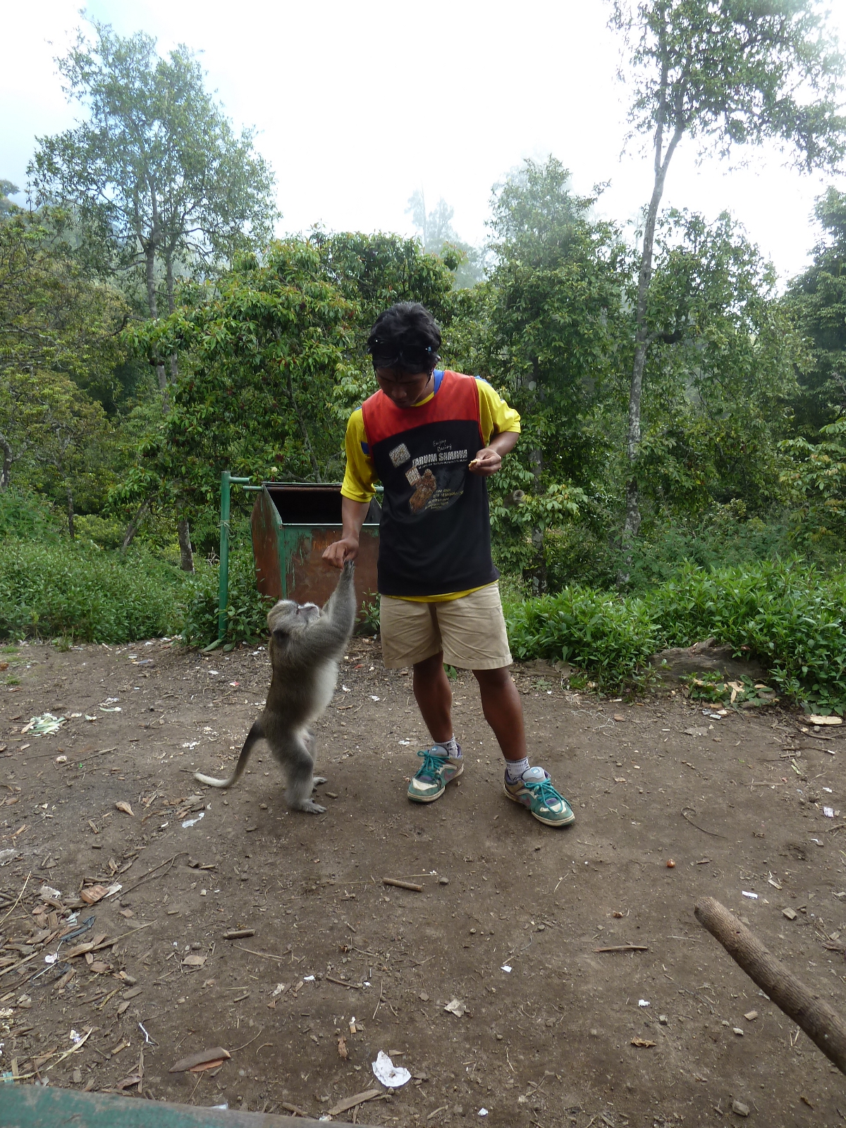 Han nourrit un des macaques