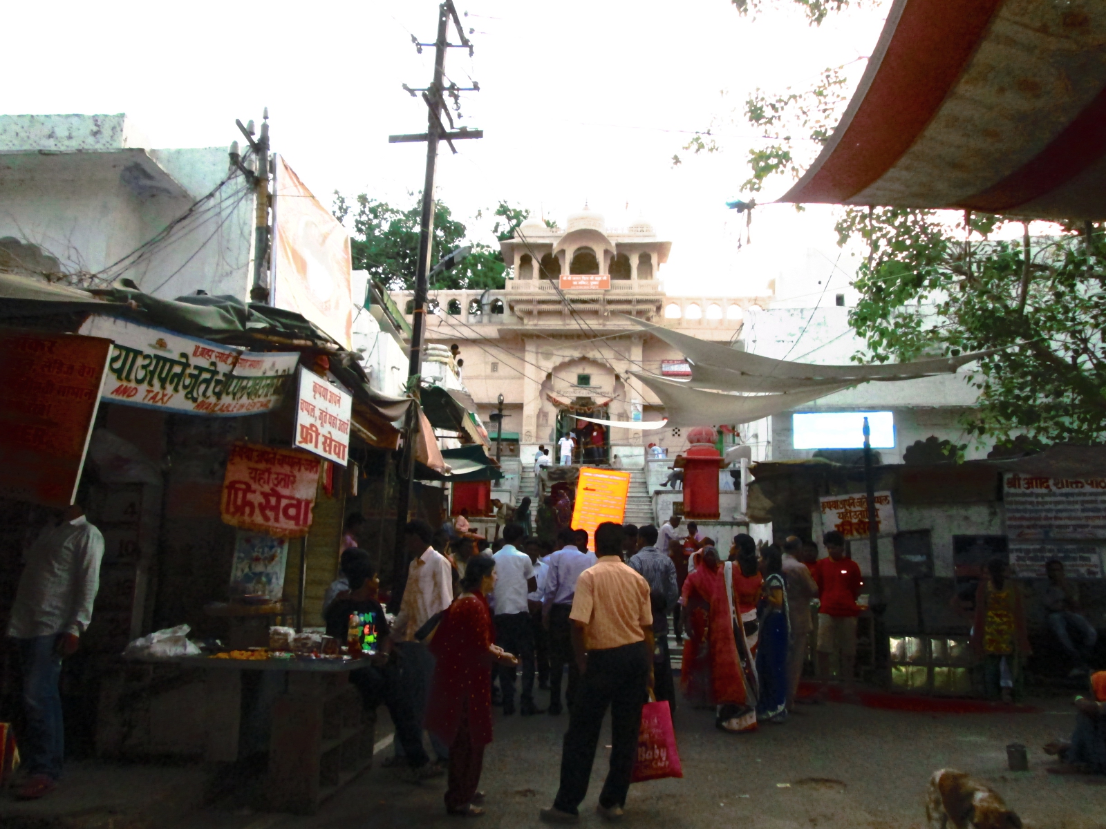 Ville sainte, Pushkar attire donc quantités de pèlerins. Ils viennent pour visiter le temple dédié à Brahma et se baigner dans le lac. En outre, les vaches sacrées règnent dans les rues, elles se promènent à petits pas, paresseusement, sous les regards respectueux des Indiens et amusés des touristes. J’aime bien les vaches, j’admire leur placidité. Enfin, notez qu’il est interdit de s’approcher du lac avec des chaussures.