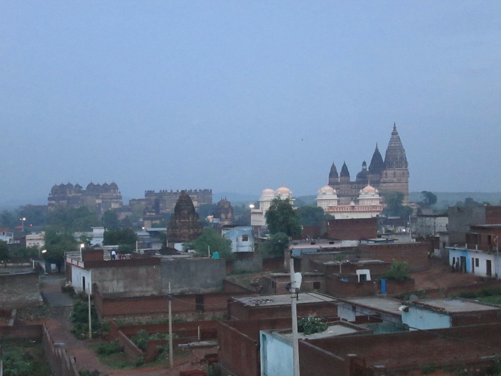 Orchhâ et quelques-uns de ses temples, le soir.