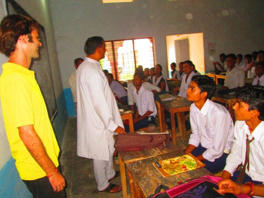 Ragu, son frère et moi avons alors pris place sur une moto et nous avons roulé jusqu’à une école située dans un autre village. Le directeur de l’école m’a accueilli avec chaleur, puis il m’a fait visiter l’établissement. J’ai ainsi rencontré les élèves de chaque classe, de la première à la septième (ou huitième?) année. Peu importe l’âge des élèves, ils étaient enthousiastes et ils m’ont salué avec entrain. Salut que je leur ai rendu avec la même joie. J’ai par la suite discuté d’éducation, tant en Inde qu’au Canada, avec le directeur. Et vint le moment de retourner au village de Ragu.