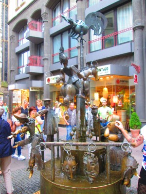 – ville célèbre pour ses bains thermaux, Aix-la-Chapelle compte aussi de nombreuses fontaines. Par exemple, entre l’hôtel de ville et la cathédrale se trouve la Puppenbrunnen, une fontaine aux pièces amovibles. Les gens peuvent donc les bouger de façon à créer des positions amusantes;