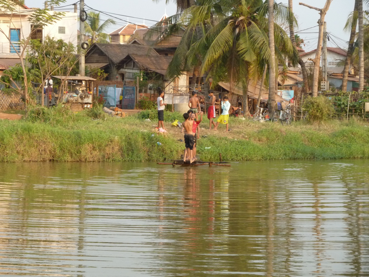 Enfants jouant aux abords de la rivière, Siem Reap