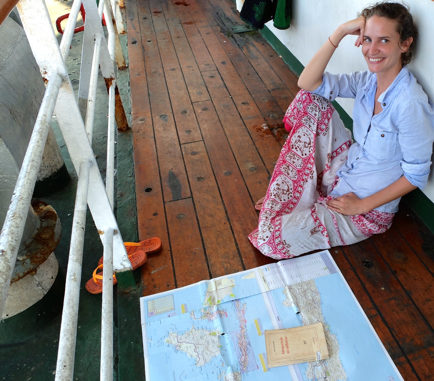 image Next → Anne sur un ferry sur la mer des Célèbes, en Indonésie, à l’été 2013 (Crédit photo: inconnu)