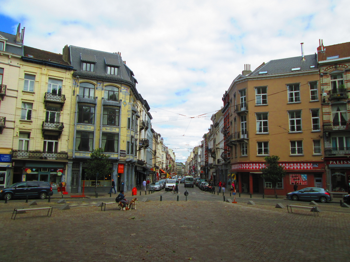 Rue **, vue depuis le parvis de l’église **