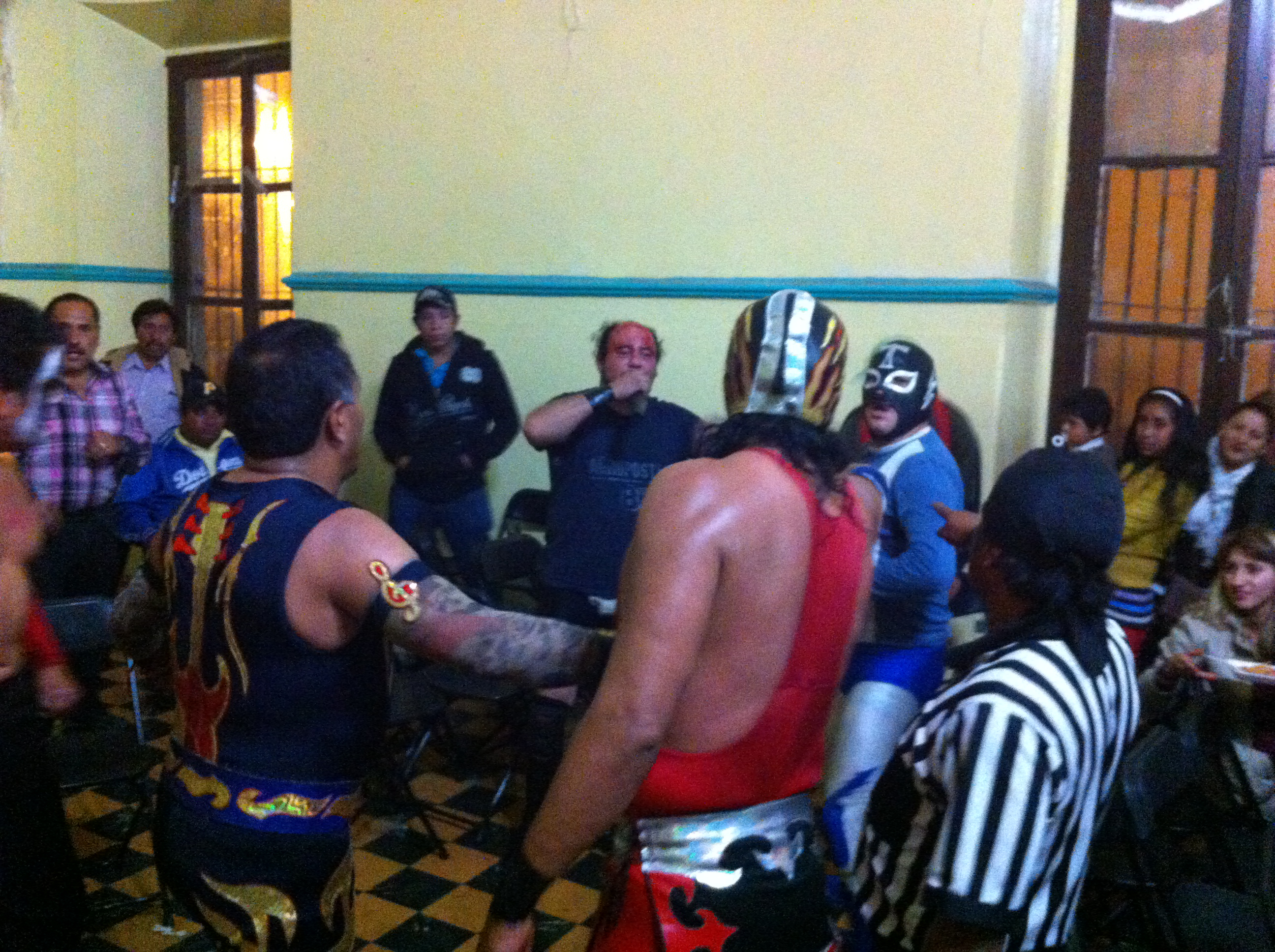 Le soir du 15, je me suis rendu au Sindicato Minero, en face du Mercado Hidalgo; j’étais l’un des premiers spectateurs. Peu à peu, la salle s’est remplie. Au début du gala, le public devait s’élever à environ 80 personnes. Mais ces 80 personnes étaient en pleine forme pour les 6 combats du gala. Résultat: 1 h 45 de cris, d’insultes et d’interactions avec les luchadores. Ces derniers se sont même battus dans la foule. Il y avait des masques, des chaises, du sang, de la haute voltige. J’étais ébloui. Fantastique soirée. À noter qu’il n’y avait pas de vente de bière lors de l’évènement, car, de toute évidence, c’était un gala familial, tsé.