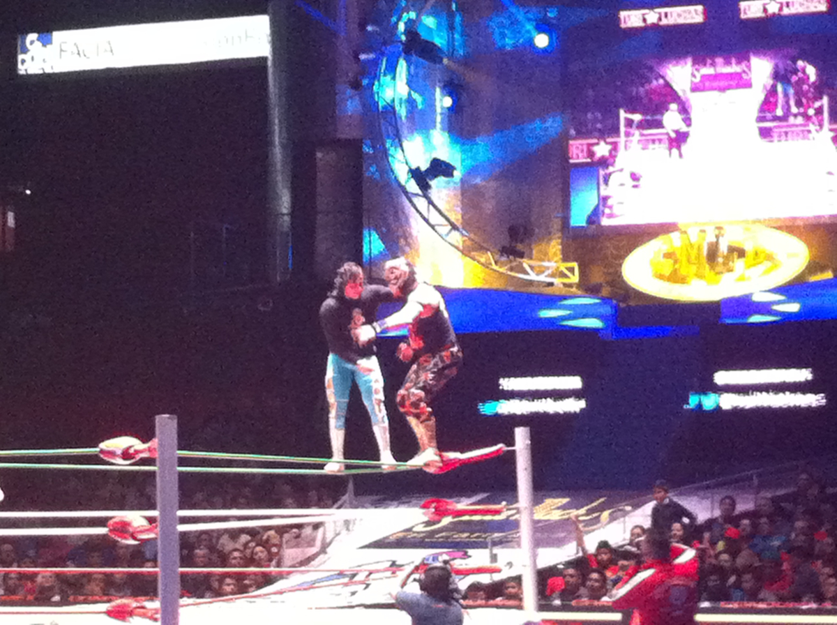 D’ailleurs, les luchadores interagissent beaucoup avec le public, au point que celui-ci peut être considéré comme un personnage à part entière. Ces interactions sont plus fréquentes dans la lucha libre que dans les autres styles de lutte: par exemple, dans le style américain, les lutteurs s’en tiennent davantage au scénario, peu importe les réactions suscitées. Le match entre John Cena et Triple H, lors du gala Wrestlemania 22, démontre ce trait avec éloquence. Dans la lucha libre, les spectateurs s’en donnent à coeur joie, même les enfants; je n’oublierai jamais ce garçon d’environ 8 ans qui hurlait « ¡Chinga tu madre! » (« baise ta mère ») à un méchant… mignon. Des mots comme « ¡Culero! » et « ¡Puto! » sont aussi généreusement utilisés par la foule survoltée à l’endroit des méchants. Pas besoin de traduire, je crois. Et quand un luchador effectue un mouvement sensationnel, les spectateurs en redemandent en criant « ¡Otra! ¡Otra! ». Maintenant que j’ai décrit quelques-unes des principales caractéristiques de la lucha libre, je vais parler de mes expériences.
