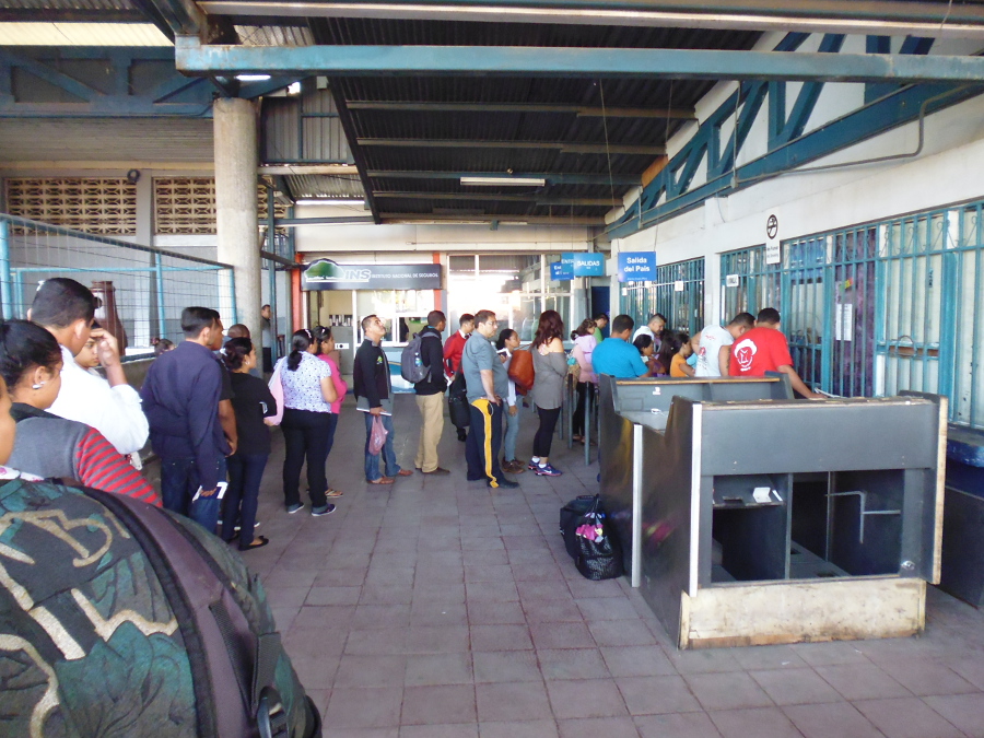 À 6 h 35, je me présente du côté panaméen. Longue file. Lente file. Quand ce fut enfin mon tour, l’agent m’a demandé mon passeport, un billet d’avion vers un autre pays (j’en avais un pour la Colombie) et un relevé bancaire, que je n’avais pas; j’ai alors dû montrer trois cartes de crédit avant qu’il n’accepte l’idée que ma situation financière était assez saine pour son pays. J’ai aussi vu des gens montrer 500 $ US en coupures de 100$ et ce fut accepté comme preuve de solvabilité.