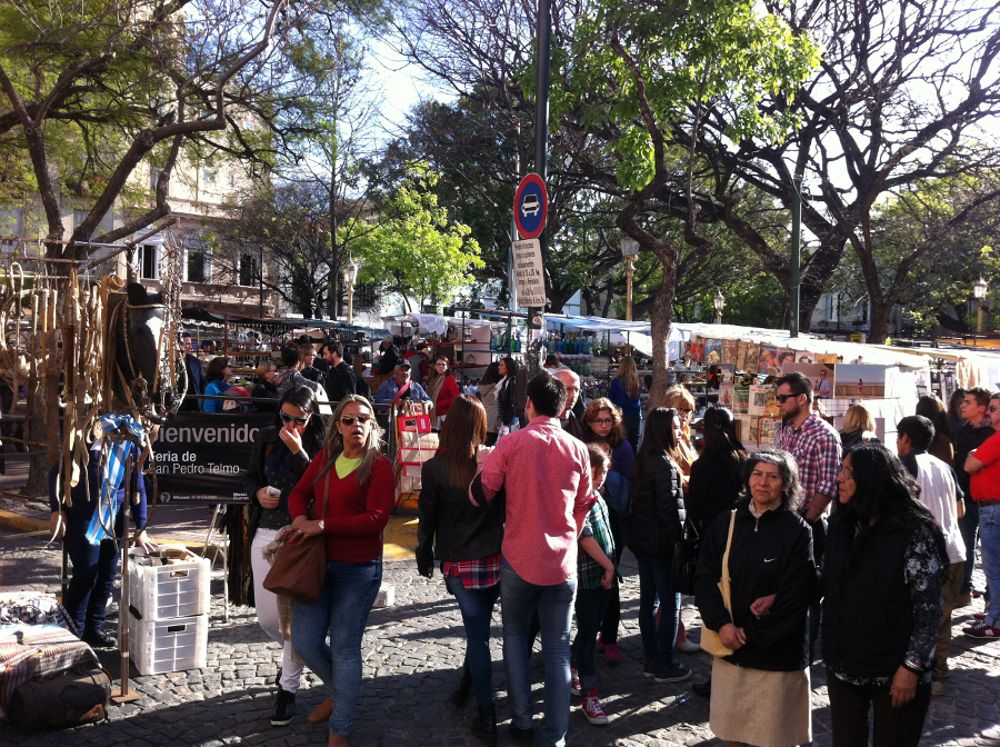 – La Feria de San Telmo se déroule tous les dimanches, sur la Calle Defensa et dans les rues avoisinantes. Ce vibrant marché extérieur propose beaucoup de trucs: des pièces d’artisanat à des cassettes audio de groupes métal argentins des années 1980 en passant par des ceintures en cuir, on y trouve de tout ou presque. J’y ai ainsi acheté 12 cartes postales pour 100 pesos. Afin de combler les appétits des visiteuses et visiteurs, un asado sur grille a été installé dans ce qui en temps normal est un stationnement;