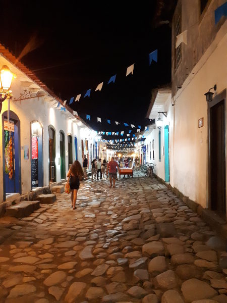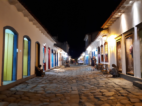 Se balader dans le centre historique, de jour comme de soir, constitue l’une des activités principales de Paraty. Et c’est un réel plaisir que de voir les bateaux mouiller paresseusement près du rivage, les édifices blancs sertis de couleurs vives, les sobres églises de taille humaine, les lointains paysages côtiers… tous ces éléments confèrent au centre une aura romantique. Je suis d’ailleurs surpris de ne pas avoir vu de séances photo de nouveaux mariés; j’ai pourtant un don pour ça.