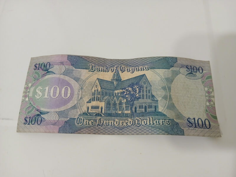 La cathédrale, sur le billet de 100 dollars guyaniens.