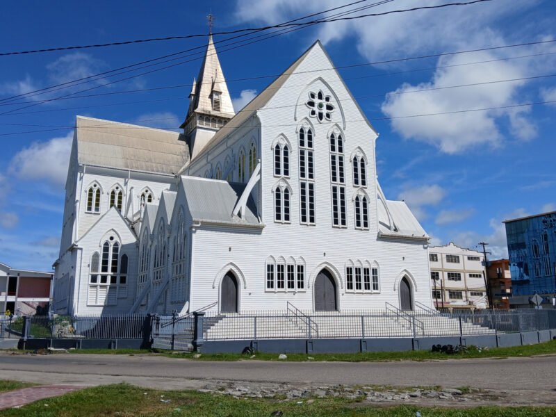 Plusieurs édifices religieux de diverses confessions sont disséminés à travers la ville. Cette caractéristique démontre le pluralisme de la société guyanienne, pluralisme moins présent dans de nombreux pays latino-américains voisins, qui sont fortement catholiques. Quant à la possibilité de visiter ces édifices religieux, je crois que c’est du cas par cas, alors tentez votre chance si le coeur vous en dit.