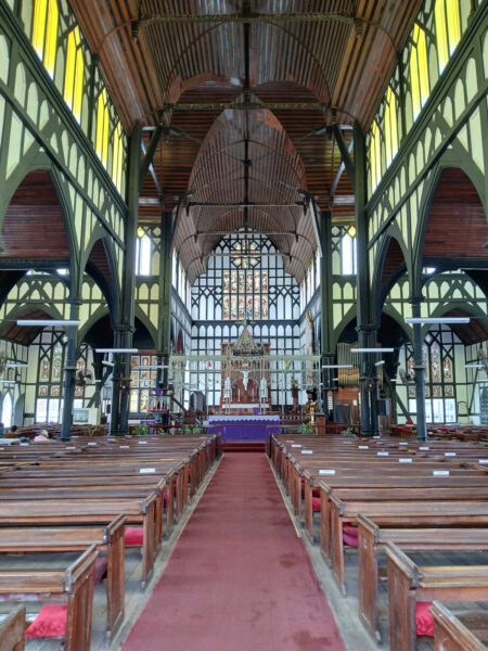 La cathédrale anglicane Saint-George est l’un des plus hauts édifices en bois au monde, avec ses 43,5 mètres de hauteur. De style néogothique, la superbe cathédrale est sans doute l’édifice le plus célèbre de Georgetown, voire du Guyana: à preuve, il figure sur les billets de 100 dollars guyaniens.