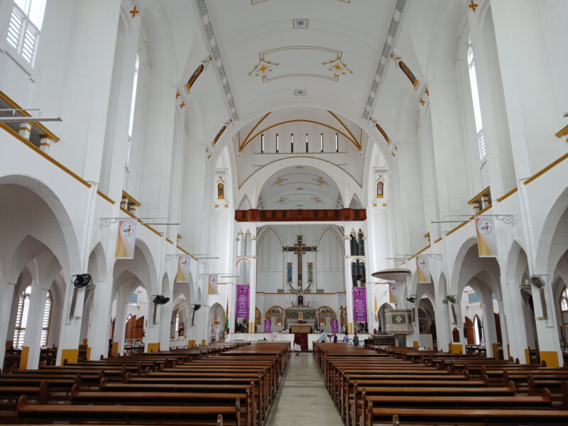 La cathédrale catholique de l’Immaculée-Conception est sobre, mais lumineuse. Elle est cependant plus belle de l’intérieur que de l’extérieur. De l’extérieur, on dirait un entrepôt.