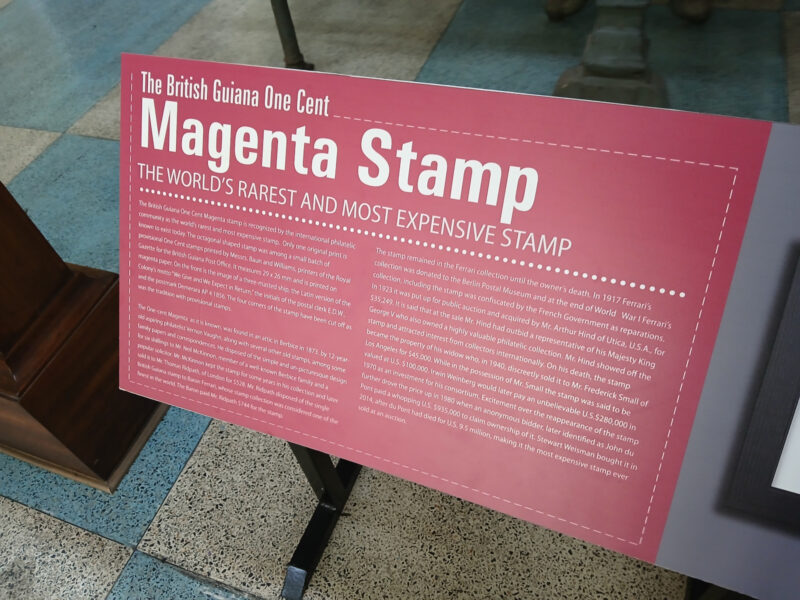 Il y a aussi une section sur l’incroyable histoire du timbre le plus cher du monde.