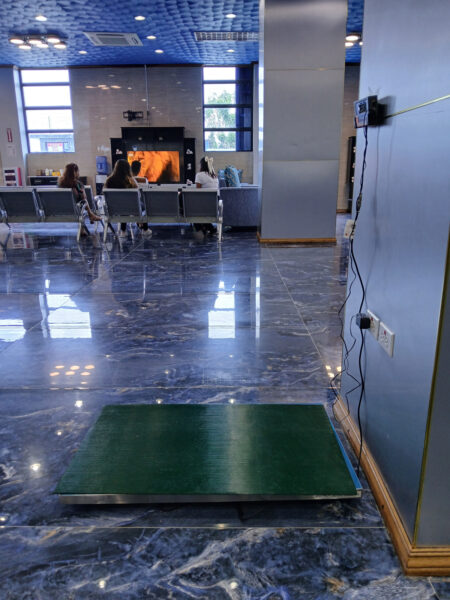 On a ensuite attendu l’ensemble des passagers. Puis, une agente est venue récupérer nos passeports pour l’enregistrement et elle a pesé chaque passager.