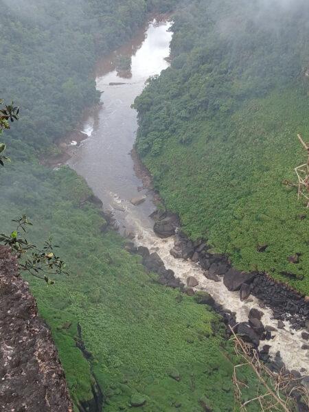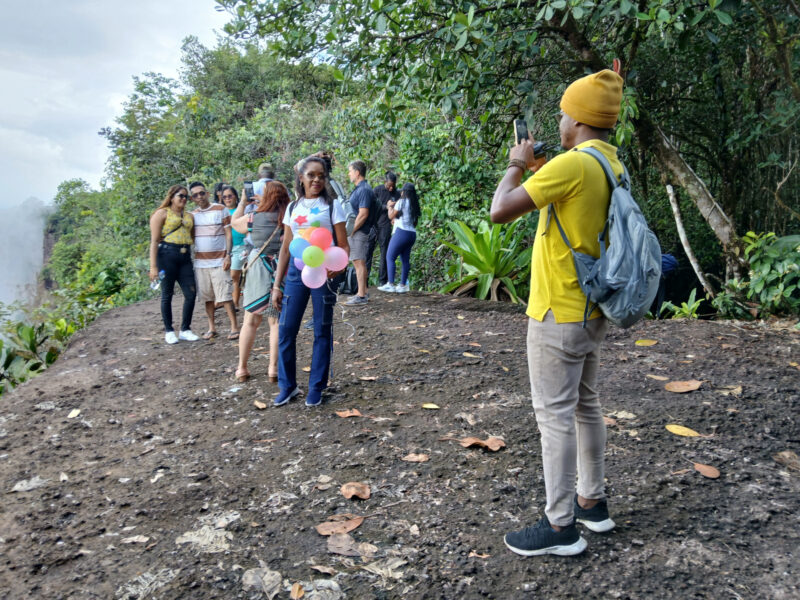 Le dernier arrêt, Nature Valley View, est le plus proche des chutes. On peut vraiment y sentir leur puissance, leur rugissement. Comme aux autres arrêts, il n’y a aucun garde-fou près de la falaise, de sorte que quelqu’un de trop téméraire pourrait tomber dans la rivière tout en bas. Les gens faisaient bien attention, mais il suffirait d’un crétin voulant épater ses fans de réseaux sociaux pour provoquer une tragédie. En revanche, cette absence de garde-fou permet de mieux admirer la végétation autour des chutes et de la rivière.