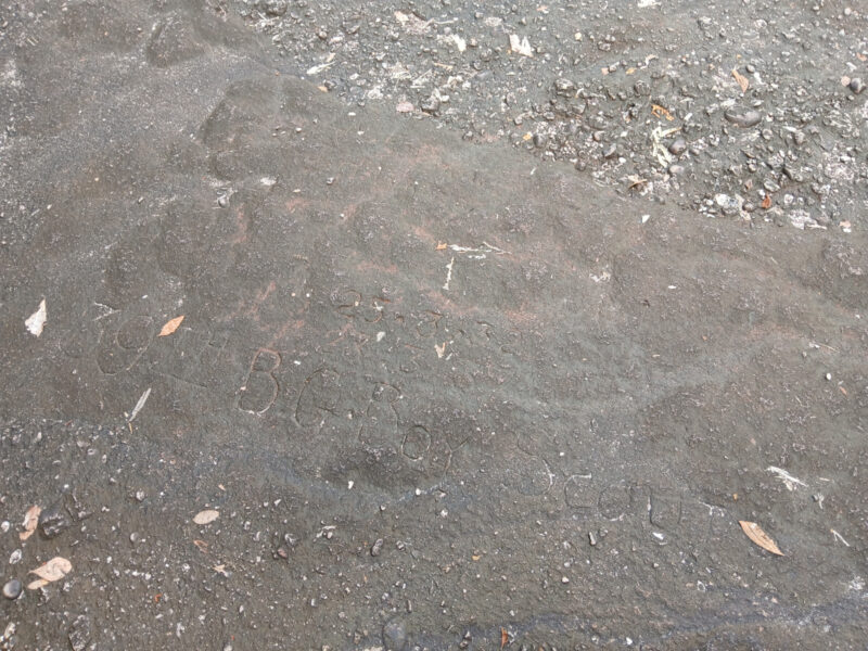 Le deuxième arrêt se nomme Boyscout’s View. Le chemin pour s’y rendre est plus facile. La vue y est aussi grandiose, mais une végétation luxuriante l’obstrue en partie. Rien pour empêcher les photographes/vidéastes de se laisser aller, cependant. En outre, une inscription datant de 1932 (si je ne m’abuse) a été gravée sur le rocher par des scouts motivés.