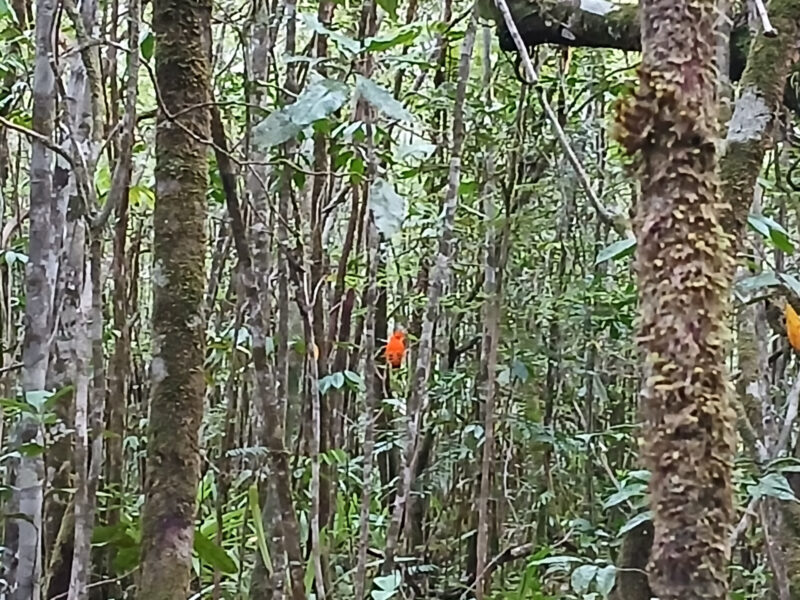 On est ensuite revenus au chalet. En chemin, on a eu la chance de voir – de loin – des Cock of the Rock – le superbe oiseau présenté sur l’affiche, dans le chalet. Leur cri ressemble aux mots Cock of the Rock et c’est une amusante hallucination auditive.