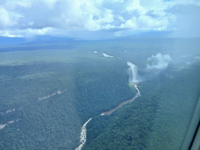 Une fois l’enregistrement terminée, on a procédé à l’embarquement. Le vol a duré une quarantaine de minutes; on a ainsi survolé Georgetown, mais aussi l’intérieur du pays. Les paysages étaient spectaculaires, surtout à mesure que l’on s’approchait des chutes.