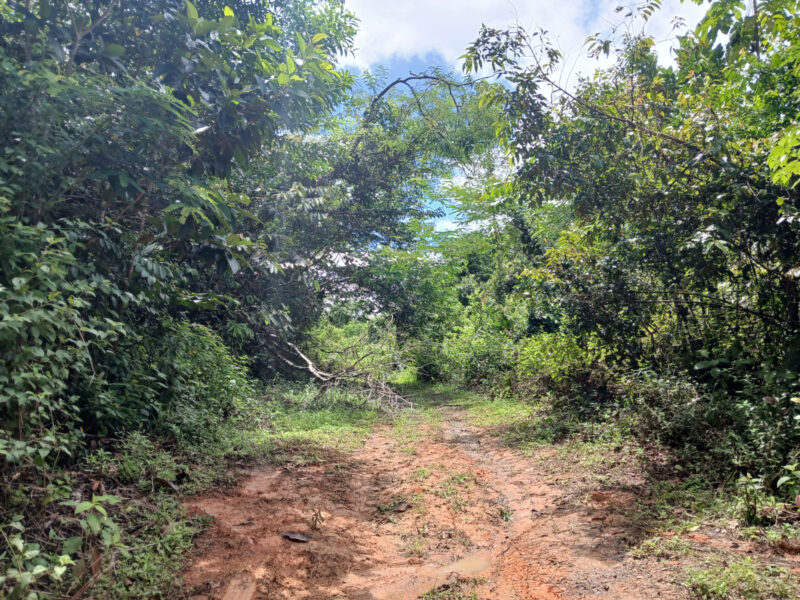 Le sentier qui mène à la clairière, sur le site de Jonestown.