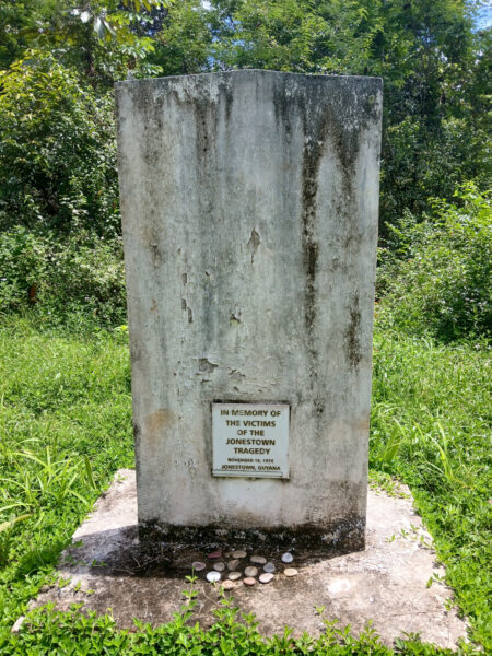 Voilà. Mon expérience à Jonestown. Le choix d’y aller revient à chacun-e, évidemment, mais j’espère que mes deux billets sur le sujet vous aideront à prendre une décision plus éclairée. Pour ma part, ce fut une expérience bouleversante, puissante, comparable à celle de visiter des lieux de douleur comme Tuol Sleng ou le camp de concentration de Terezín. Je ne suis pas sorti indemne de cette expérience: j’ai ressenti une forte lassitude, une immense tristesse là-bas. Comme si le Mal qui imprégnait les lieux avait trouvé une façon de s’infiltrer en moi. De ronger une part de mon humanité. Des questions sans réponse ont surgi dans mon esprit, aussi: pourquoi tout ça? Comment une telle monstruosité a-t-elle pu se produire? Je ne pense pas qu’il soit possible d’aller à Jonestown sans ressentir de vives, voires douloureuses émotions.