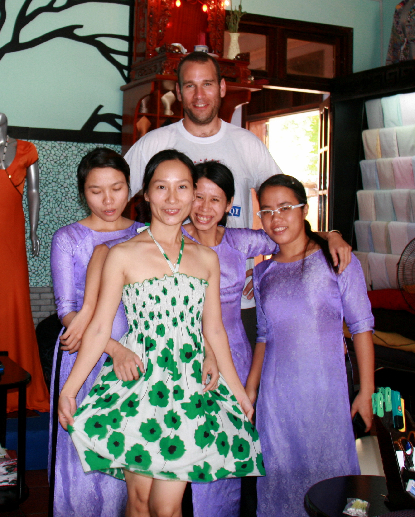 271 ← Previous Next → Philippe et les tailleuses vietnamiennes, à Hoi An (photo prise par le propriétaire de la boutique)